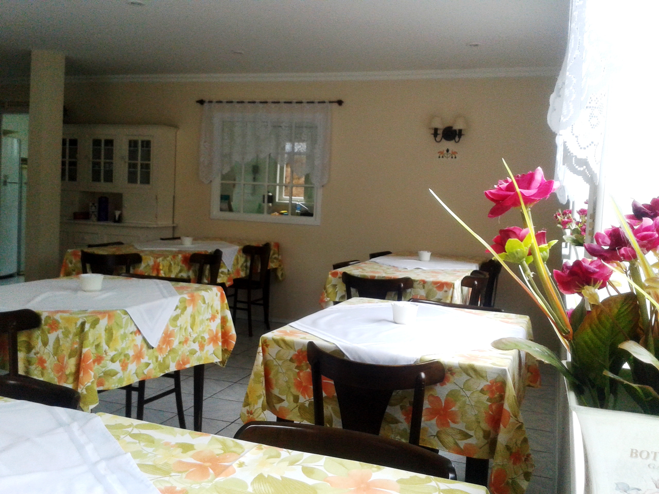 Espaço aconchegante no qual o hóspede pode tomar seu café da manhã com tranquilidade.
