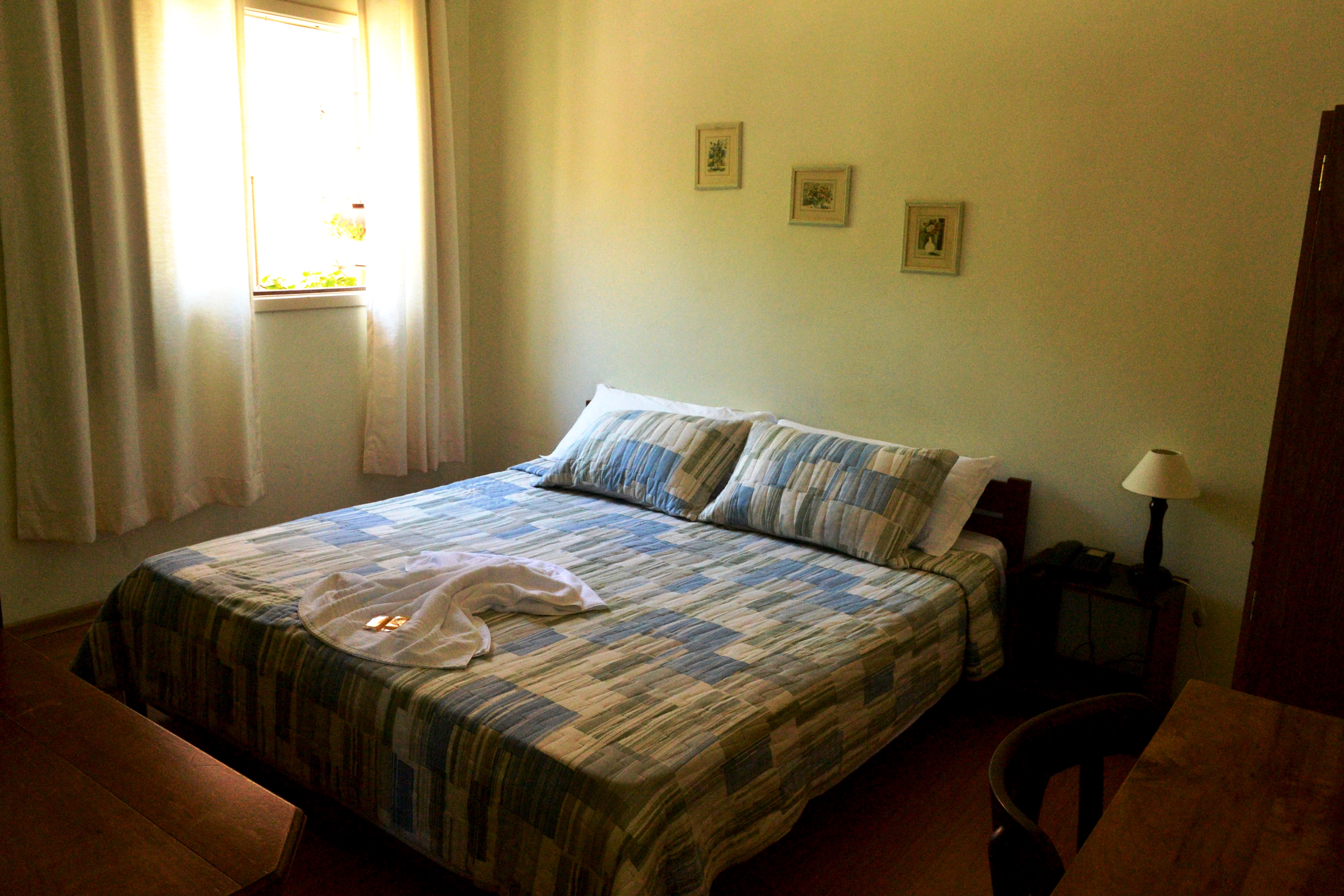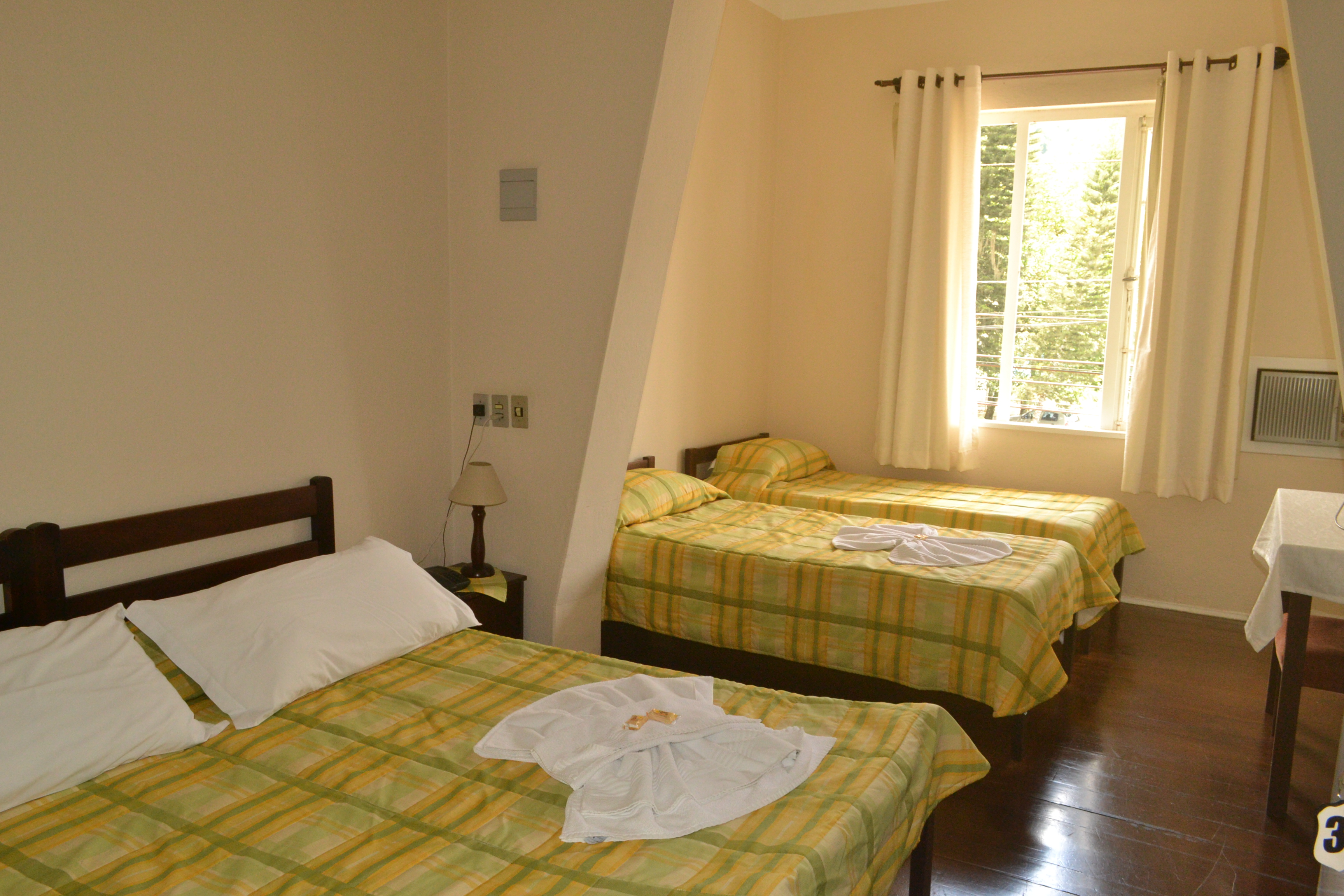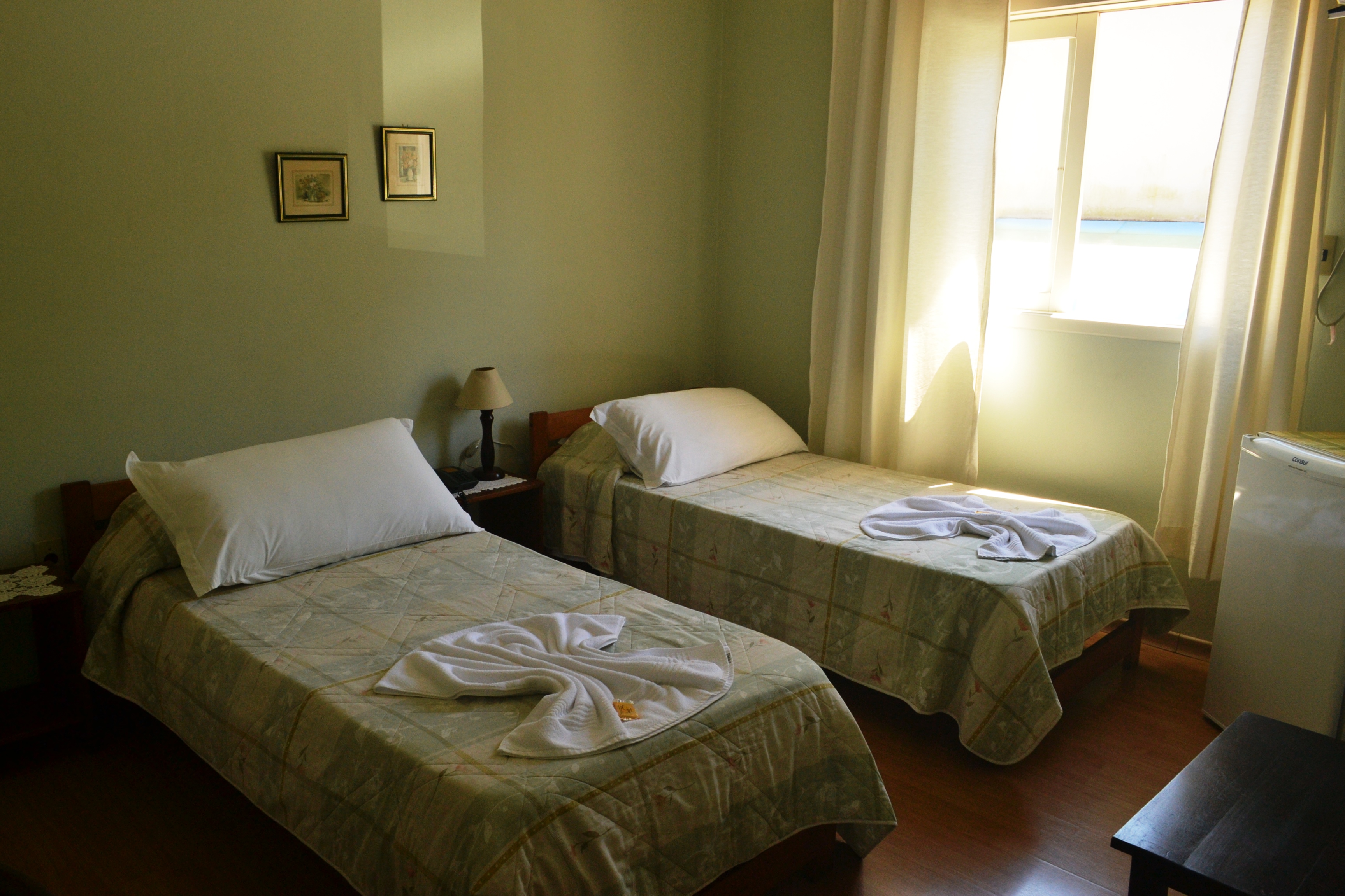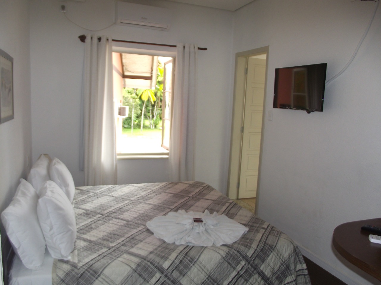Possui ar condicionado, frigobar, televisor e telefone. |